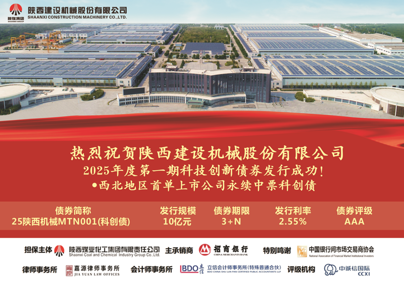 6月26日,陜西建設(shè)機(jī)械股份有限公司(以下簡(jiǎn)稱(chēng)“建設(shè)機(jī)械”)成功發(fā)行2025年度第一期科技創(chuàng)新債券,發(fā)行規(guī)模10億元,票面利率2.55%,發(fā)行期限3+N年,債項(xiàng)評(píng)級(jí)AAA。 本次中期票據(jù)簡(jiǎn)稱(chēng)“25陜西機(jī)械MTN001(科創(chuàng)債)”,由陜煤集團(tuán)提供連帶責(zé)任保證擔(dān)保,招商銀行擔(dān)任獨(dú)家承銷(xiāo)商。建設(shè)機(jī)械充分借助中國(guó)銀行間市場(chǎng)交易商協(xié)會(huì)大力推廣債券市場(chǎng)“科創(chuàng)板”的有利政策,成功發(fā)行西北首單上市公司科技創(chuàng)新債券,也是陜西省屬企業(yè)首次發(fā)行次級(jí)永續(xù)中期票據(jù)。作為陜煤集團(tuán)裝備制造板塊核心企業(yè),建設(shè)機(jī)械自2004年在上海證券交易所掛牌上市(股票代碼:...