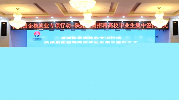 為扎實有序推進(jìn)穩(wěn)就業(yè)工作走深走實,5月7日,由陜西省人力資源和社會保障廳、省政府國有資產(chǎn)監(jiān)督管理委員會主辦,陜西煤業(yè)化工集團(tuán)有限責(zé)任公司、陜西省人才交流服務(wù)中心承辦的“省屬國企穩(wěn)就業(yè)專項行動——陜煤集團(tuán)招聘高校畢業(yè)生集中簽約儀式”在陜煤集團(tuán)舉行。