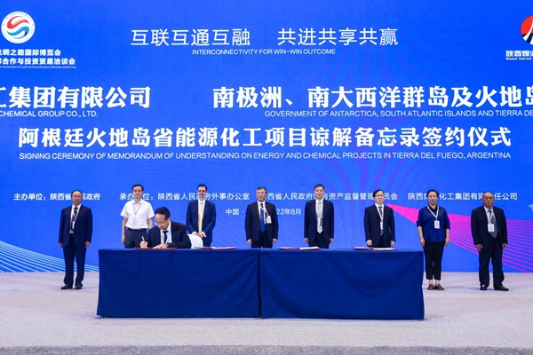 會上,阿根廷駐華大使牛望道及有關(guān)企業(yè)就阿根廷地方政府與陜西省友城結(jié)好及相關(guān)領(lǐng)域務(wù)實(shí)合作進(jìn)行推介、西咸新區(qū)就整體項(xiàng)目特別是足球中心與阿合作進(jìn)行交流對接。阿根廷火地島省政府與陜煤集團(tuán)所屬陜西化工集團(tuán)簽署關(guān)于支持在火地島省開展能源化工項(xiàng)目的諒解備忘錄;陜煤集團(tuán)與富海集團(tuán)簽署印尼新絲路產(chǎn)業(yè)園項(xiàng)目框架合作協(xié)議;陜煤集團(tuán)榆林化學(xué)榆東科技有限責(zé)任公司與日本宇高株式會社簽署煤炭分質(zhì)利用制化工新材料示范項(xiàng)目50萬噸/年DMC工程合作協(xié)議。