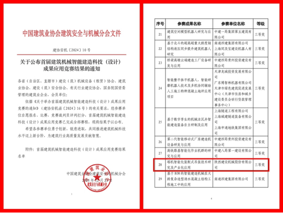 陜建機(jī)股份榮獲建筑機(jī)械智能建造科技(設(shè)計(jì))成果應(yīng)用競(jìng)賽“三等獎(jiǎng)”