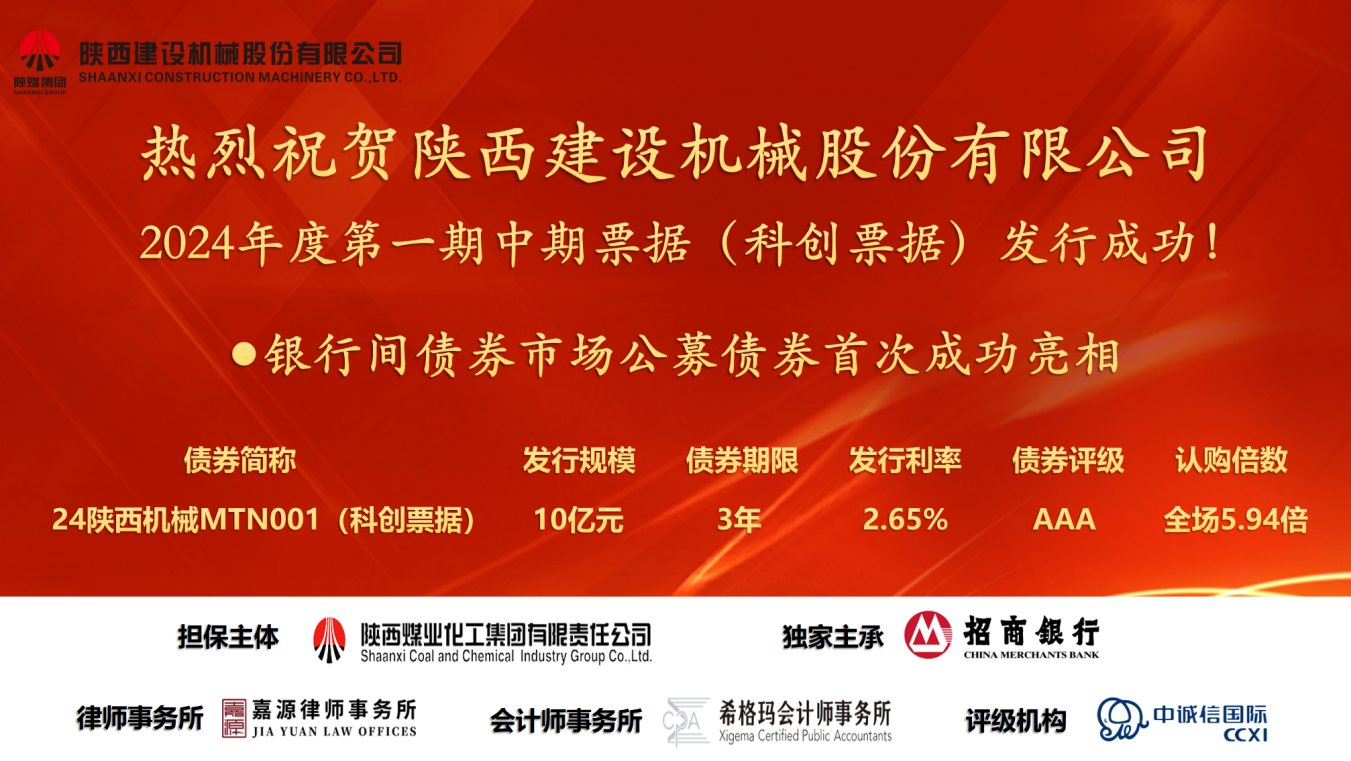 4月11日,陜西建設(shè)機(jī)械股份有限公司(以下簡(jiǎn)稱“建設(shè)機(jī)械”)2024年度第一期中期票據(jù)(科創(chuàng)票據(jù))成功發(fā)行,這也是建設(shè)機(jī)械在銀行間債券市場(chǎng)公募債券的首次成功亮相本期中票簡(jiǎn)稱“24陜西機(jī)械MTN001(科創(chuàng)票據(jù))”,發(fā)行規(guī)模10億元,票面利率2.65%,全場(chǎng)認(rèn)購(gòu)倍數(shù)5.94倍,債券評(píng)級(jí)AAA,發(fā)行期限為3年,由陜西煤業(yè)化工集團(tuán)有限責(zé)任公司(以下簡(jiǎn)稱“陜煤集團(tuán)”)提供連帶責(zé)任保證擔(dān)保,獨(dú)家承銷商為招商銀行。本期中票的成功發(fā)行,凸顯了公司低成本融資優(yōu)勢(shì),再次體現(xiàn)了資本市場(chǎng)對(duì)建設(shè)機(jī)械的高度認(rèn)可,在拓寬公司融資渠道、優(yōu)化債務(wù)結(jié)構(gòu)的同時(shí),也為...