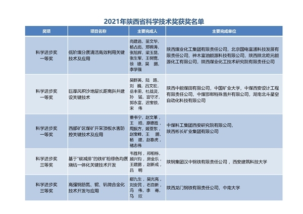陜煤集團(tuán)5項(xiàng)科技成果榮獲2021年度陜西省科學(xué)技術(shù)獎(jiǎng)
