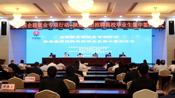 “省屬國企穩(wěn)就業(yè)專項(xiàng)行動(dòng)——陜煤集團(tuán)招聘高校畢業(yè)生集中簽約儀式”在陜煤集團(tuán)舉行
