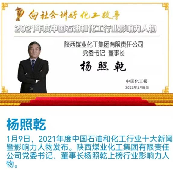 2022年1月9日,由中國石油和化學(xué)工業(yè)聯(lián)合會指導(dǎo),《中國化工報》社有限公司主辦的“2021年度石油和化工行業(yè)十大新聞暨影響力人物發(fā)布盛典”采用線上直播的形式舉行。陜煤集團(tuán)黨委書記、董事長楊照乾榮膺“2021年度中國石油和化工行業(yè)影響力人物”。發(fā)布盛典上,同時發(fā)布了《2021年度石油和化工行業(yè)責(zé)任關(guān)懷輿情報告》和2021年度中國石油和化工行業(yè)企業(yè)公民楷模榜,北元集團(tuán)和東鑫垣公司等50家企業(yè)上榜。2021年以來,楊照乾以超前管理、系統(tǒng)思維、戰(zhàn)略思維,帶領(lǐng)全體干部職工勇立行業(yè)前沿,以國有資本投資公司改革為契機(jī),統(tǒng)籌推進(jìn)三項制度和混...